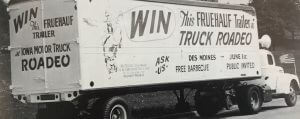 The first IMTA Truck Roadeo was held at the Iowa State Fairgrounds and over 5,000 spectators were in attendance for the finals. In an effort to create enthusiasm for the Truck Roadeo, Fruehauf donated this trailer as the grand prize. The second place prize was a 1946 Ford V8 Super DeLux automobile.